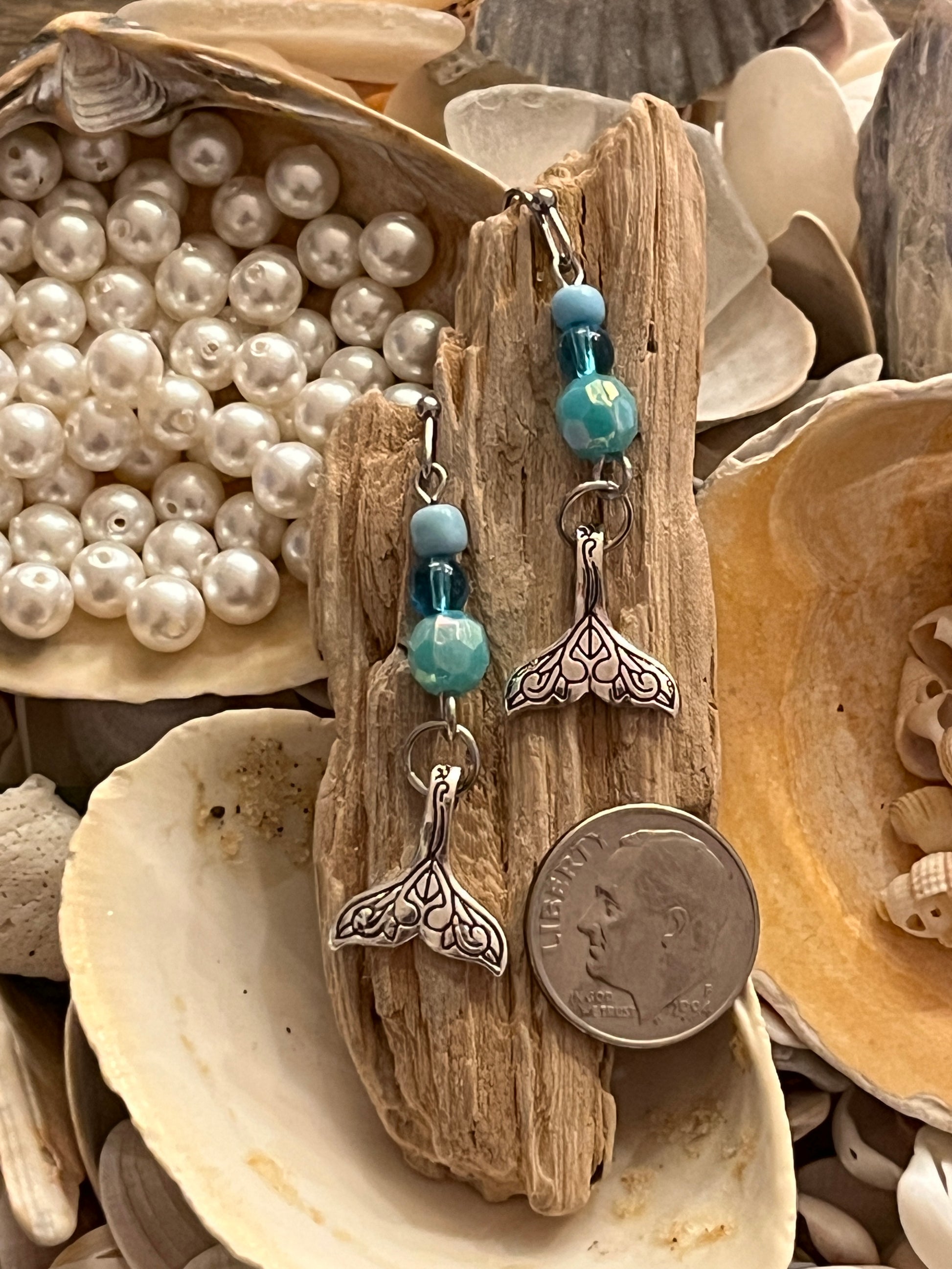 Channel those ocean vibes and show off your inner sea goddess with our lightweight mermaid/whale tail earrings. They're the perfect splash of shimmer for any outfit — whether you're lounging by the shore or just daydreaming about the sea.