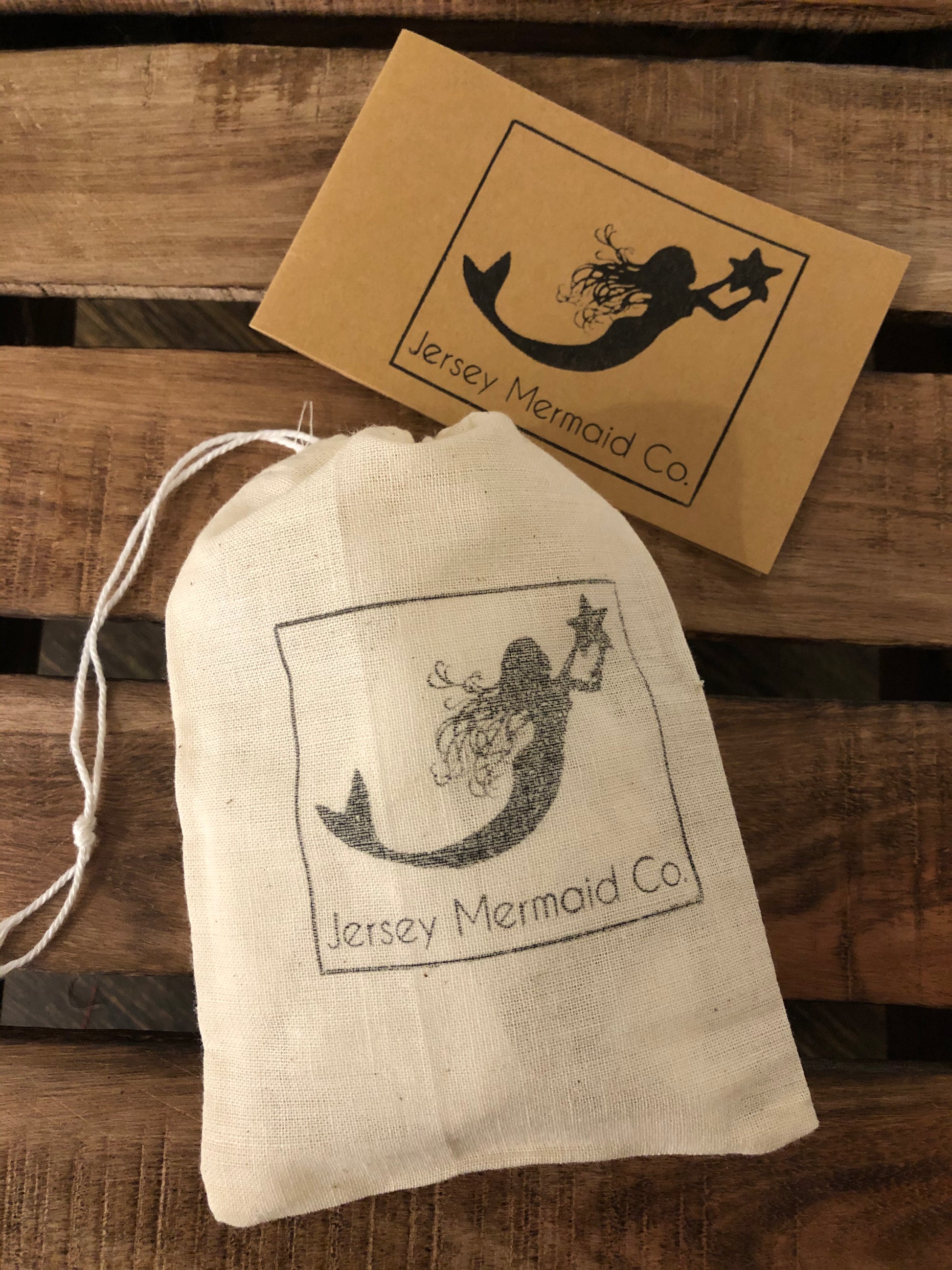- packaged in a cotton bag with the Jersey Mermaid Co. logo on it.