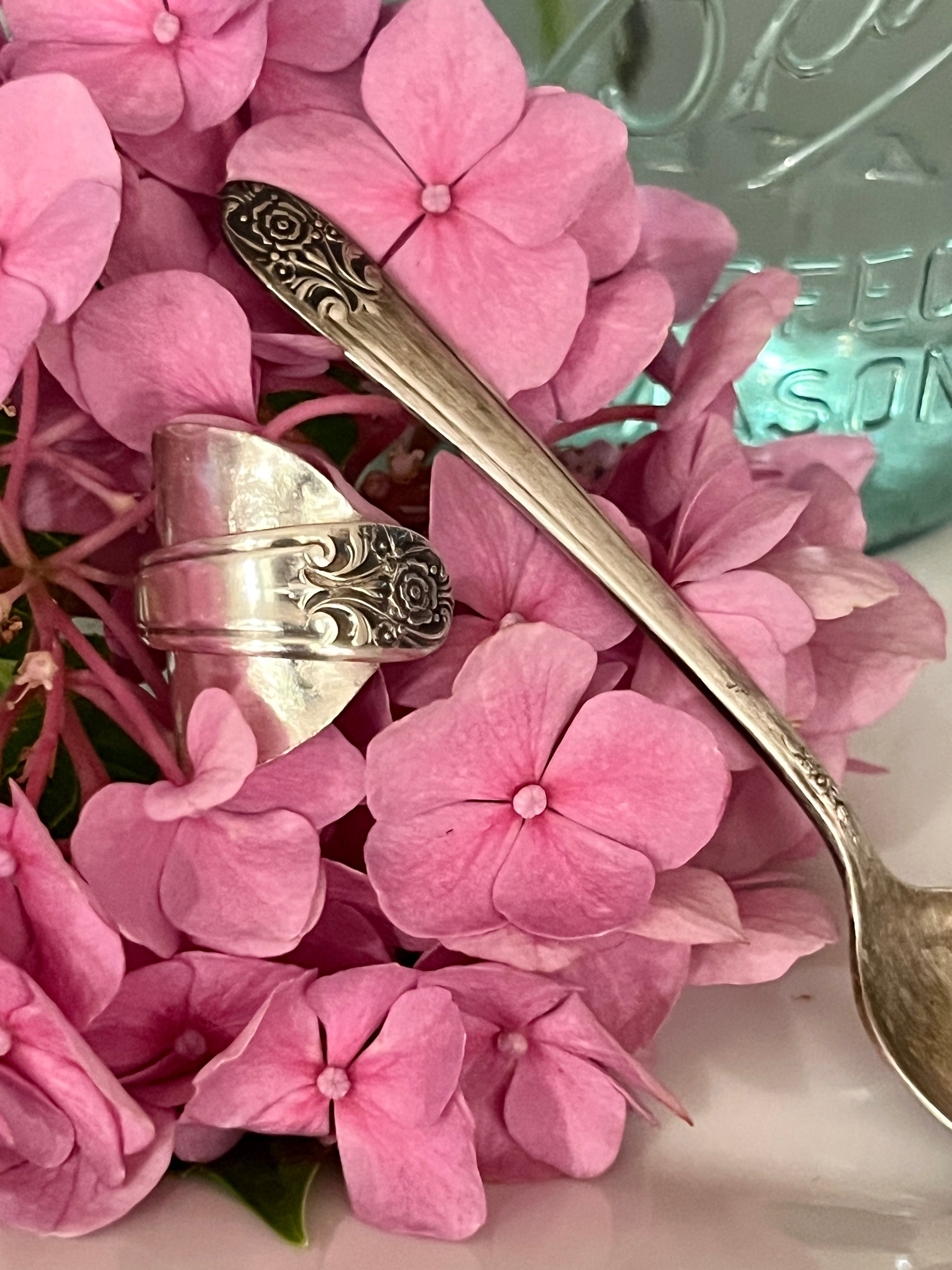 This beautiful pattern is also available in a traditional band spoon ring, listed separately.