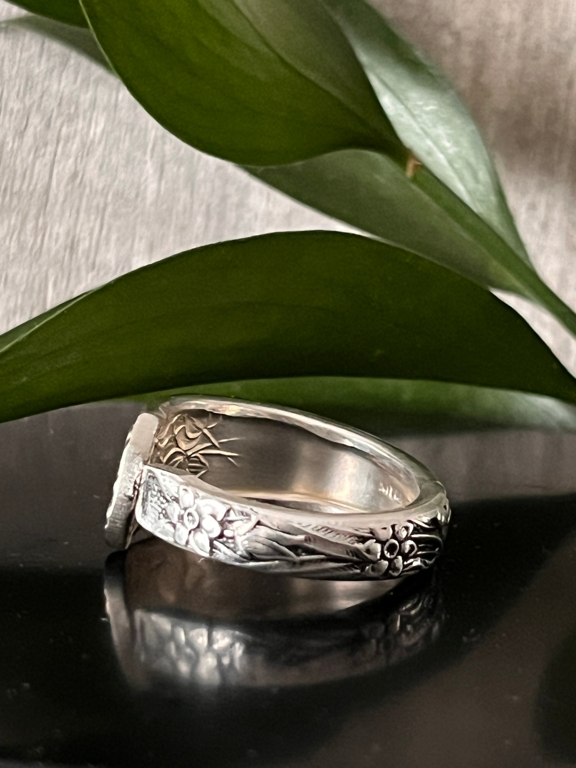Narcissus Spoon Ring DARKENED - Vintage 1935 *** thinner band