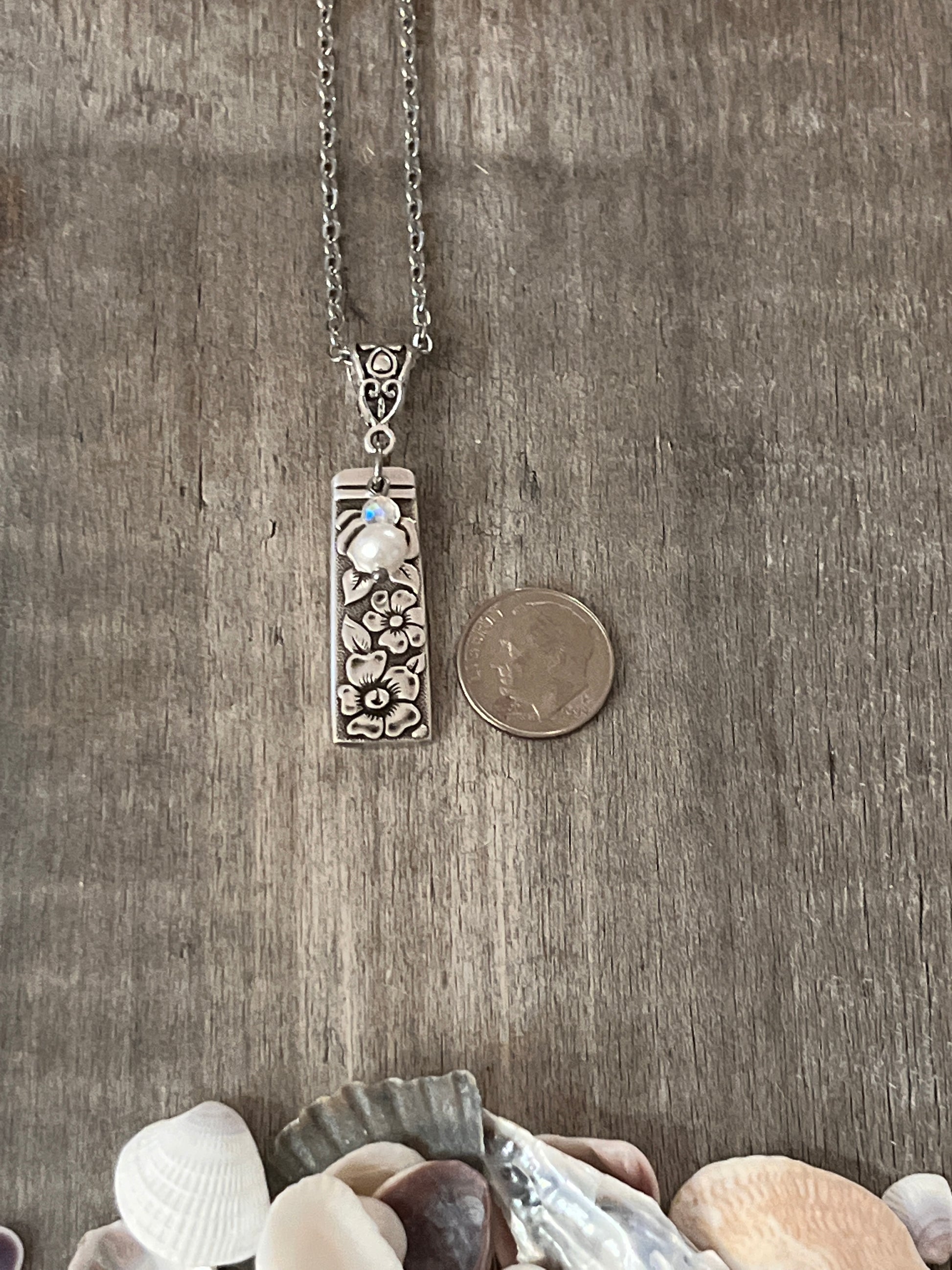 Vintage Silver Plated fork Reimagined into a unique pendant paired with a faux pearl.