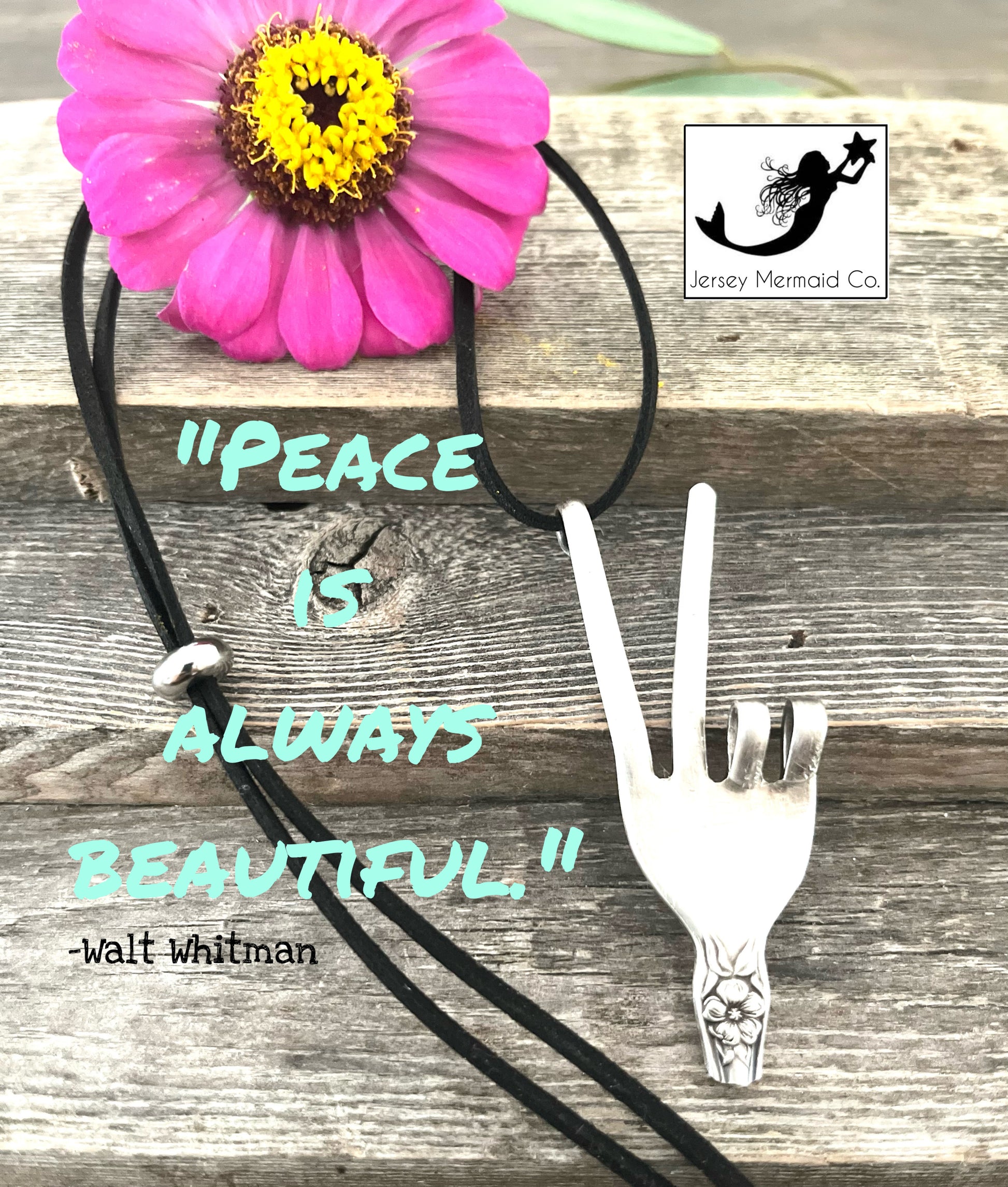 Vintage Fork head has been Reimagined into a hand with two fingers fashioned with the peace sign. A small portion of the handle has been intentionally left to appreciate the intricate floral detail.