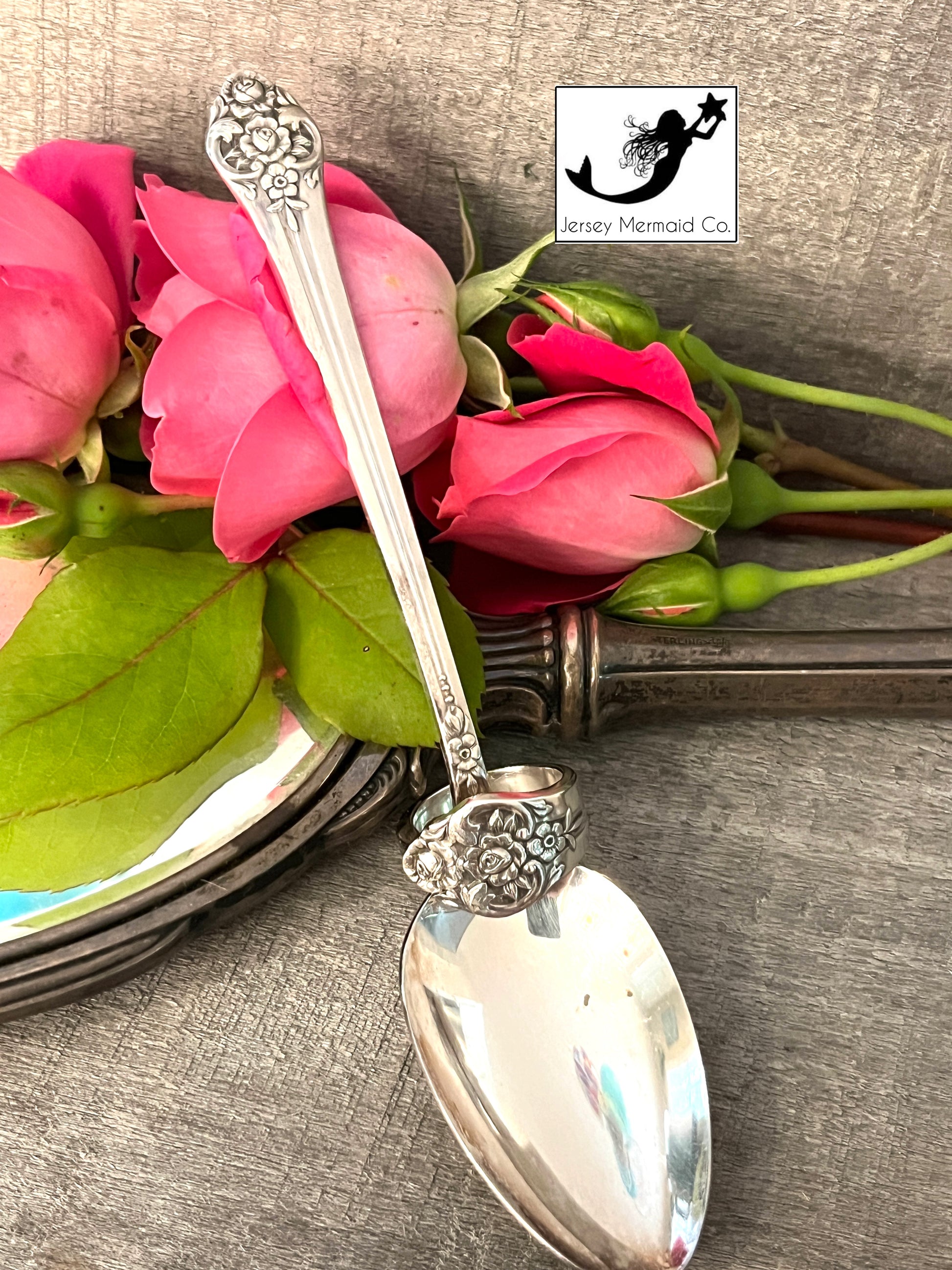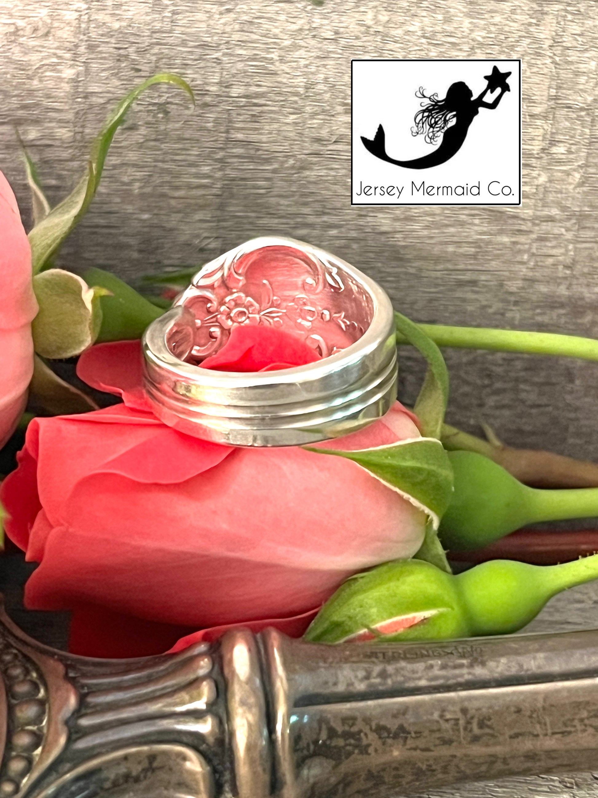 Vintage Silver Plated Silverware has been reimagined into a traditional band style ring.