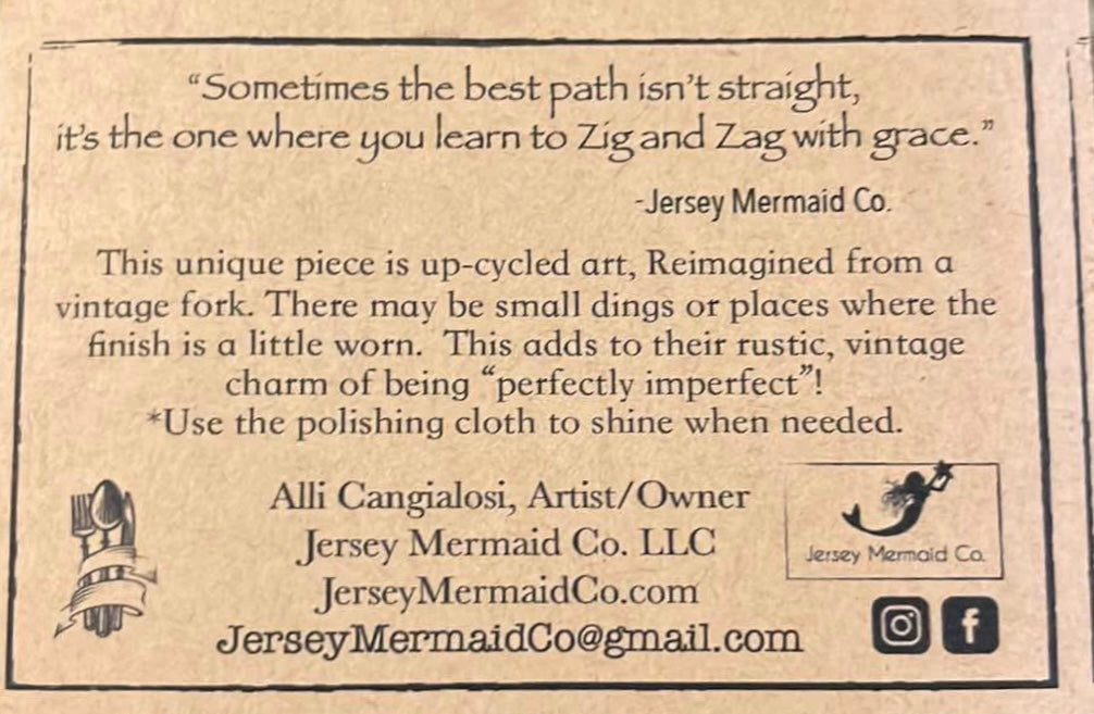 Handcrafted from vintage silverware, this zig zag design made from a fork tine is a bold reminder that sometimes the twists and turns are what make life beautiful.
